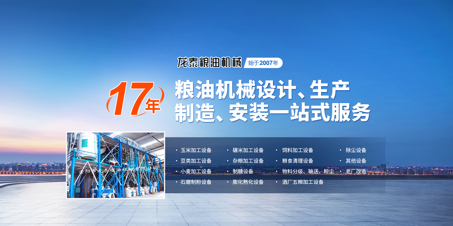 安陽市龍泰糧油機械有限公司是一個集糧油機械設計、生產制作、安裝于一體的設備制造商。公司坐落于農業生產基地河南省安陽市。多年來,公司與科研機構建立了廣泛的技術協作關系,精心致力于糧食加工設備的技術創新與應用,產品涵蓋整套碾米機械、小麥加工設備、玉米加工設備、雜糧加工設備,飼料加工及油脂設備等多個領域??沙薪尤椎慕昏€匙工程,提供從資金預算,整體規劃,土建設計,設備制造、安裝、培訓,售后保障等一站式服務?! ∥夜緭碛歇毩⒆灾鬟M出口權及產品原產地注冊證書。產品除國內市場外,多次出口到,亞洲,非洲,南美洲、東歐等多個國家及地區。為國內外多家企業提供了工藝先進,技術過硬,節能的糧油設備,深得國內外客戶的一致好評。  公司以“質量就是生命”為宗旨,根據客戶不同需求,采用合理的技術方案,為客戶量身打造投資建廠方略,爭取實現高收益。公司生產過程嚴格按照合同和圖紙設計要求,生產符合設計標準、檢測標準、質量優良的產品供給客戶,并提供安裝、調試、培訓,保修期免費維修,終身免費咨詢等服務,確保設備在長期使用中穩定運行?! ↓執?愿與您一起攜手共創輝煌!
